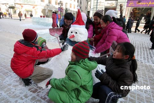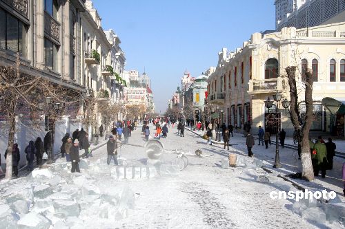 12月15日凌晨,哈尔滨降下小雪。该市道里区政府按照市民建议作出决定,保留中央大街上的降雪,雪后3日进行清理。据悉,在该市中央大街步行街上,典雅的欧式建筑被白雪覆盖后,景色迷人。中新社发 姚庭山 摄