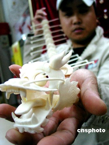 12月18日,山东潍坊民间骨雕艺人王建学向记者展示他刚雕刻完成的骨制“龙头蜈蚣”风筝。“骨风筝”是用骆驮骨雕刻而成,总长80厘米,龙腰12节,每一个节片直径4厘米,厚度2厘米,12个节片上面都雕刻着一个龙。令人叹为观止的是风筝的龙头,不仅龙舌、龙须、龙耳、龙鳞刀工细腻,更绝的是两个龙眼还能够转动,令观者们啧啧称奇。中新社发 张驰. 摄