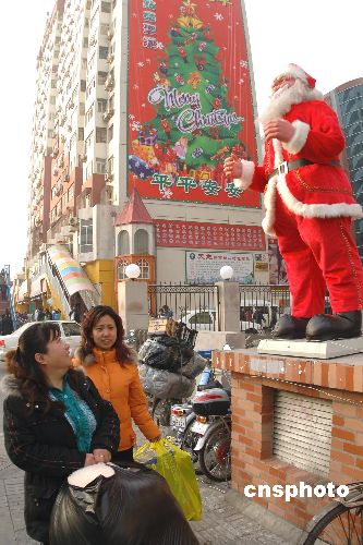 十二月十九日,北京商业社区和闹市街头又洋溢起一年一度的圣诞气息,电动圣诞老人现身街头,手舞足蹈与行人互动。中新社发 邹宪 摄