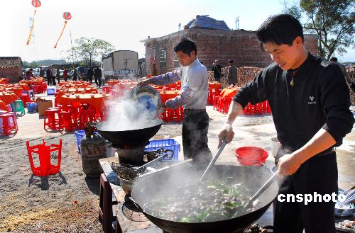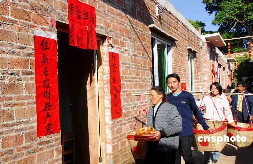 十二月十九日,广东四会龙甫镇广财塘村震耳欲聋的鞭炮声响起,肇庆灾民新居全面竣工,元旦前全部陆续迁入新屋。今年肇庆经历历史上罕见的洪涝灾害,台风“珍珠”、“碧利斯”等相继袭击该市,造成当地局部地区洪涝灾害严重,倒塌房屋一点四六万多间,重建全倒户四千四百零四户。中新社发 黄耀辉 摄