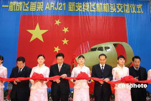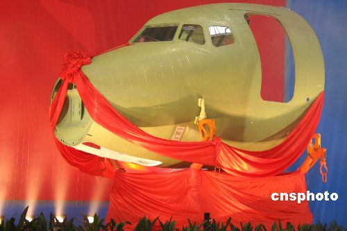 12月20日,中国首架拥有自主知识产权、全数字化设计的支线飞机ARJ21飞机的第一个机头,在成都正式交付,将运往上海于明年3月进行总装,2008年3月该机可望实现首飞。中新社发 杨杰 摄