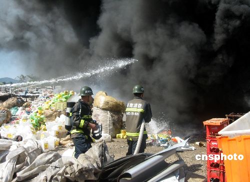 12月21日中午12时15分,田独镇一塑料品收购站发生火灾,海南三亚消防支队亚龙湾中队接警后迅速赶赴火场。收购站火灾现场火光冲天,滚滚浓烟,收购站存放的大量塑料制品使火势迅速蔓延,并产生大量有毒气体。现场指挥员迅速部署战斗任务,组织民警疏散在场群众并进行警戒,消防官兵出水枪进行扑救,及时疏散了煤气瓶。经过近三个小时的奋战,消防官兵将大火扑灭,未出现群众伤亡。中新社发 黄炬 摄