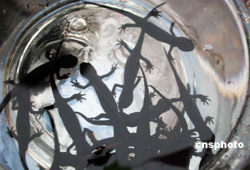 12月25日,在浙江温岭九龙汇商业街美食节流动摊点上,有人出售海马干制成品和娃娃鱼。据悉,娃娃鱼、海马均属国家二级保护动物,这种行为属违法。中新社发 江勇兵 摄