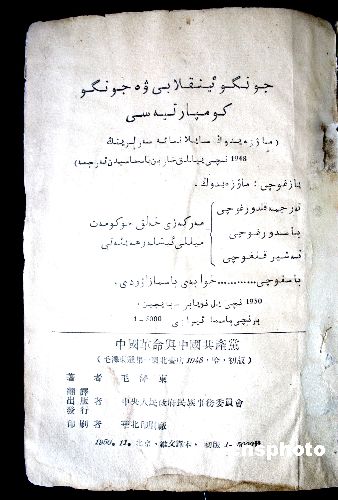 新疆哈密发现一本1950年出版的维吾尔文毛泽东选集单行本《中国革命与中国共产党》,选集共95页,两大章。12月25日,据了解,这本选集是迄今国内发现最早的维吾尔文毛泽东选集单行本。中新社发 普拉提 摄