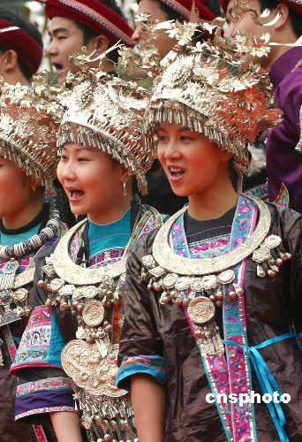 图为三江侗族自治县的侗家女在表演侗族大歌。广西柳州市近日分别在龙潭公园和花果山举行迎新联欢活动,来自融水苗族自治县、三江侗族自治县、柳城县等市辖各县少数民族群众欢聚一堂,载歌载舞,为即将到来的新年增添了喜庆气氛。中新社发 龙涛 摄
