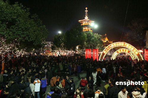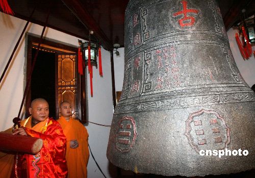 2006年12月31日夜,千年古刹苏州寒山寺举办第二十八届听钟声活动,近五千名海内外嘉宾、游客参加,寒山寺外枫桥景区及周边参加游园听钟声活动的苏州市民超过五万人。中新社发 邱勇 摄