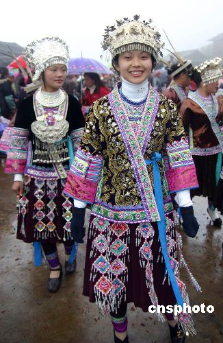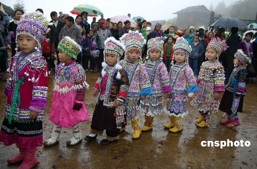 1月1日,在广西大苗山融水苗族自治县安陲乡乌吉村,人们围着芦笙队放起了放了起鞭炮。当日,是2007年的第一天,乌吉村举行了苗族传统的芦笙踩堂,苗胞们穿上节日盛装,载歌载舞地欢庆新年的到来。中新社发 龙涛 摄