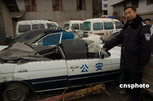1月4日,贵州省凯里市公安机关在该州废旧金属回收公司二龙回收站当场砸毁45辆已达报废年限及无牌照的警用车辆,以此来加强公安机关正规化建设,树立公安机关及公安民警良好的公众形象。中新社发 吴如雄 摄