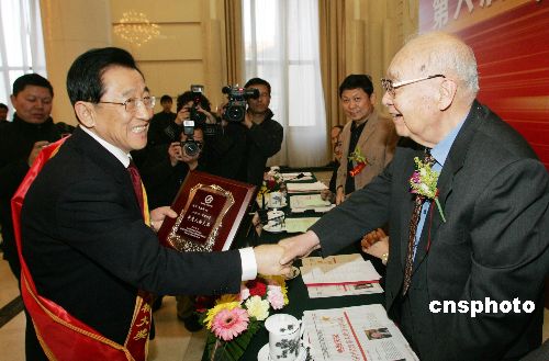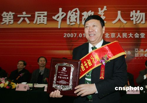 一月六日,第六届中国改革人物颁奖盛典在北京人民大会堂举行,以表彰奖励中国改革进程中涌现出的先进人物和事迹。中国国家林业局局长贾治邦、内蒙古蒙牛乳业股份有限公司董事长牛根生荣获二零零六中国改革年度人物大奖,九届全国人大常委会副委员长王光英、九届全国政协副主席王文元、中国经济体制改革研究会会长高尚全等出席了颁奖盛典。中新社发 武仲林 摄