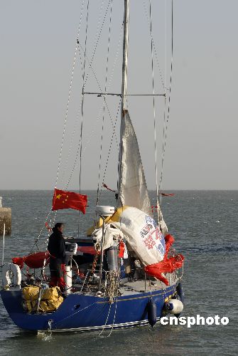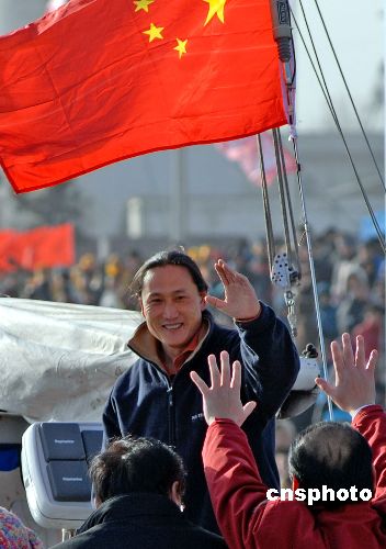 | 1月6日,翟墨挥手告别。当天中国航海家翟墨驾驶“日照”号无动力帆船,从“中国水上运动之都”日照市启航,开始他自驾无动力帆船环球航海。这是中国人首次单人无动力环球航海。总航程3万多海里。据悉,翟墨环球航海做为CCTV《文明之路·世界文明环球纪行》电视行动海上小组船长,将用一年时间,一个人驾驶一条无动力帆船,独立独自完成环球航海的拍摄计划。当日,中央电视台、中国水上运动会组委会和日照市人民政府举行了隆重的启航仪式。翟墨,1968年11月出生于山东泰安,画家、航海家,曾旅居法国、新西兰,多次举办个人画展。中新社发 范海波 摄