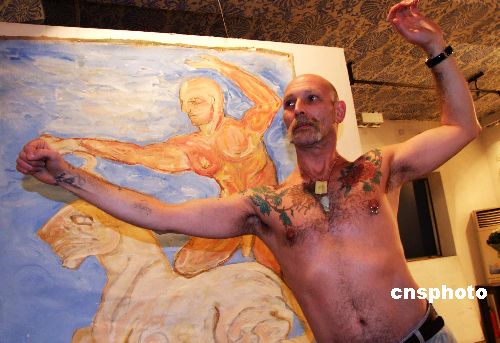 1月6日,加拿大籍国际艺术家Andreas Guibert在上海举办的“油画+行为艺术展-上海新娘”个展闭幕。在闭幕式上为来宾揭秘了形体语言的运用法则。现居上海的Andreas Guibert,是一位创意不断的传授新媒体技术的艺术教师,他与助手、学生一起用形体语言诠释现象和情绪的表演,引起上海艺术人士的极大兴趣,并使“上海新娘”艺术展闭幕式成为人们永远的记忆。中新社发 蒋振雄 摄
