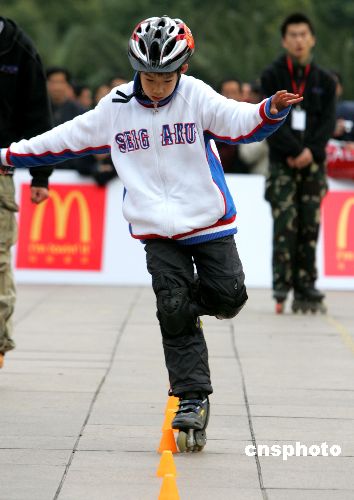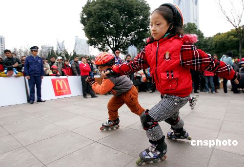 1月13日,在沪举行的首届上海少儿轮滑大赛吸引了众多小朋友前来参赛,小朋友们在寒风中你追我赶,争创佳绩,优异的表现令在场观众赞叹不已。中新社发 汤彦俊 摄