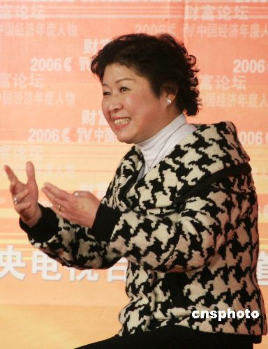 1月12日,中国女首富张茵参加“2006CCTV中国经济年度人物财富论坛”的专场论坛。张茵承诺“要把玖龙做成污染最少的企业”。论坛结束后,张茵被听众围个水泄不通,要求签名、合影留念。中新社发 吴芒子 摄