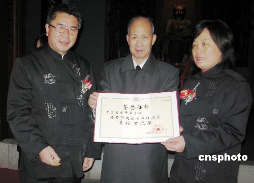 1月13日,在广东省东莞台商协会会长、东莞台商子弟学校董事长叶宏灯(左一)的带领下,该校四十二名教师在湖南省炎陵县炎帝陵墓前祭拜炎帝,并为炎帝陵基金会捐资十万元人民币。中新社发 肖前辉 摄