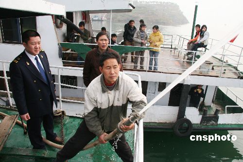 2007年1月18日,重庆市云阳县港航管理处展开对辖区内客运船舶的全面安全检查,积极备战春运客流高峰期的到来。所有接受检验的船舶必须在24项安全性能指标经检验合格后,持管理方核发的春运许可证方可投入春运。中新社发 饶国君 摄