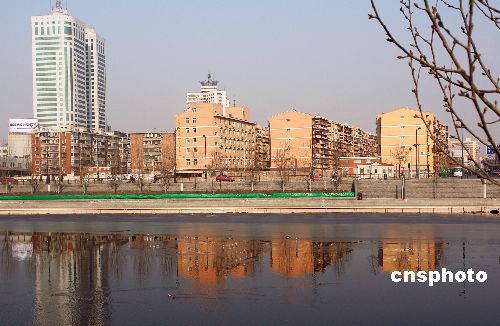 1月23日,天津最高气温5℃左右,与往年同期相比气温高出3~4℃,偏高的气温使海河冰层不实、局部融化。中新社发 李胜利 摄