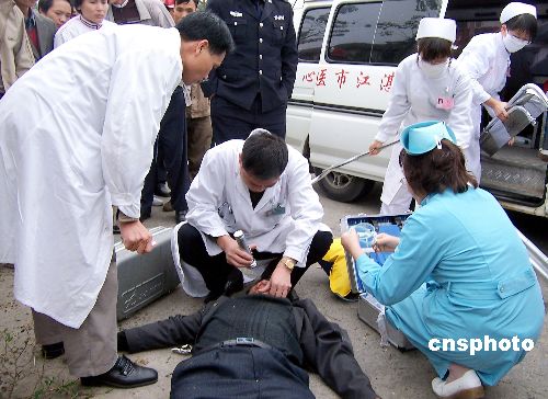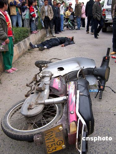 1月23日15时15分左右,广东省湛江市椹川大道新村市场对面路段突发车祸。一名唐姓中年男子酒后驾驶摩托车,急速撞击道旁花坛水泥围墙后飞身倒地,全身抽搐。过往行人报警,“120”急救人员闻讯后5分钟内先后赶至现场,当场开展急救,诊断为醉酒和脑部损伤。办案交警透露,湛江市区近期酒后交通事故频发,并忠告机动车司机牢记交通安全,平安迎接即将到来的春节。中新社发 王启明 摄