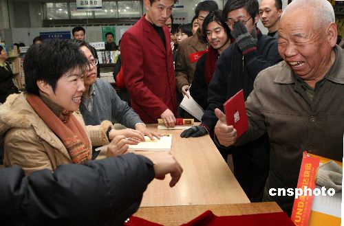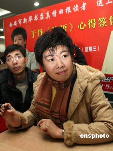 1月24日,北京师范大学于丹教授来到西安,首先在市委礼堂面对千余读者进行演讲,接着到西安图书大厦签售她的《于丹<论语>心得》,赢得男女老少各个年龄段的FANS对其狂热追捧。中新社发 尚洪涛 摄