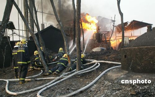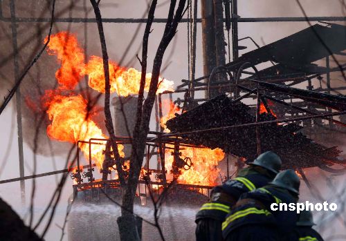 2月4日,南京一化工厂发生爆炸。据了解,事故原因可能是的装乙醇一大罐发生爆炸,造成多人受伤,南京市及时消防官兵赶到现场施救,当日下午5时,大火仍未扑灭。中新社发 吴俊 摄
