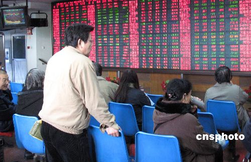 2月5日周一,中国沪深股市进一步震荡走低调整,先期上涨指标股正当微妙的做空时期,其他各股跃跃欲试,有忆苦者也有品尝思甜大餐者,北京股民做空做多各有参与。上证指数报收2612.54点,下跌60.68点,跌幅为2.27%,成交545.42亿元人民币;深成指收盘7292.95点,下跌55.09点,跌幅为0.75%,成交251.10亿元人民币。中新社发 邹宪 摄