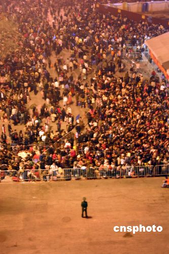 2月11日晚,广州火车站进站口等待进站的旅客。铁道部相关人士透露,目前,广州地区细化旅客乘降组织方案,并在天桥、地道、楼梯等关键地段加岗引导,防止旅客挤伤、踩伤。中新社发 尘扬 摄