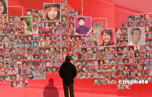 2月15日,北京朝阳国际风情节组委会工作人员在朝阳公园主草坪竖起一座高6米、长30米的巨型“笑脸墙”,并从征集来的4000余张笑脸照片中筛选出2008张,制作成照片张贴上墙。春节期间,这座“笑脸墙”必将成为一道亮丽的风景。中新社发 吴芒子 摄