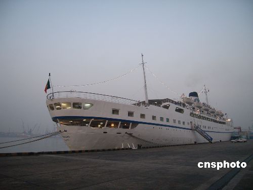 二月十六日上午,葡萄牙籍“丰沙尔”豪华邮轮靠抵天津港,这是今年到达天津港的第一艘旅游船。预计今年将有十七艘(次)国际豪华邮轮“做客”天津港。据悉,天津港将在东疆港区建设中国北方最大的邮轮母港。 中新社发 扈明 摄
