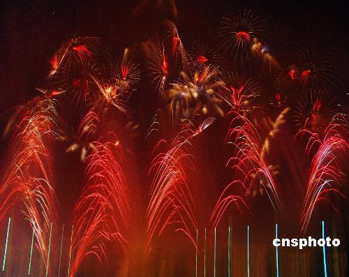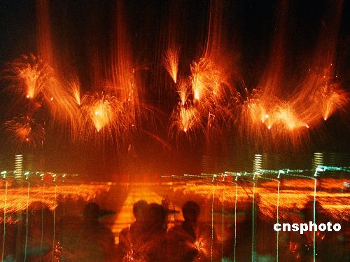 2月19日晚,大连烟花爆竹迎春会焰火燃放在大连星海湾广场举行,共燃放中、高空烟花10万余发,引来滨城25万市民与来宾共赏焰火晚会。中新社发 王锡增 摄