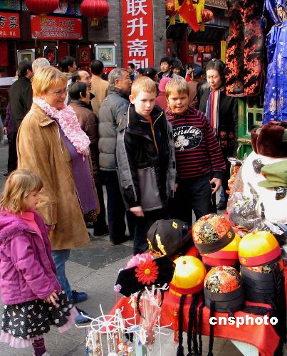 已有六百余年历史的天津是中国民俗荟粹之地。每逢新春佳节,抖空竹、卖糖画、捏面人、“茶汤”表演等传统民俗都能在古文化街重现,吸引了世界各地的游客。据统计,今年春节,天津接待了来自美国、德国、法国、日本等国家数十个旅游团队。中新社发 伍振 摄