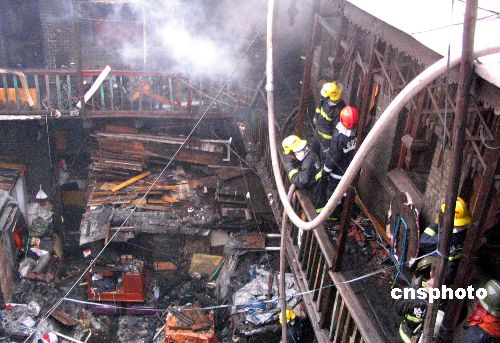 2月25日下午3时许,位于黑龙江哈尔滨道外区南二道街28号一老式建住大院2楼发生火灾,3个消防中队赶往现场扑救,经过2个小时将大火扑灭,所幸火灾没有造成人员伤亡。中新社发 肖劲彪 摄