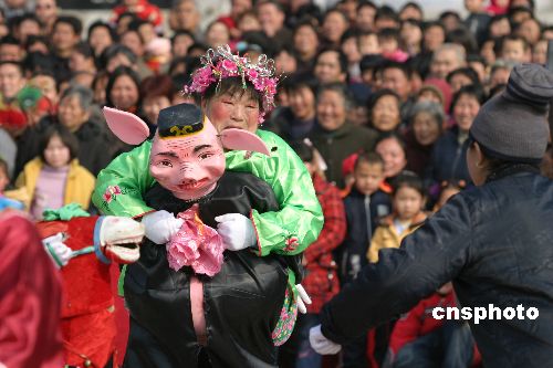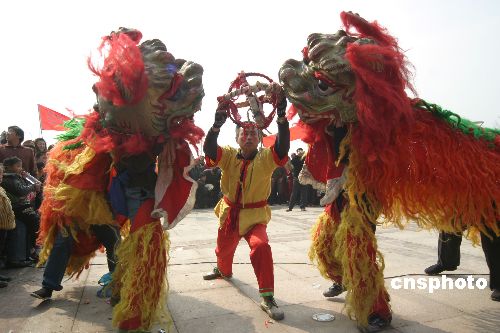 2月27日,河南省许昌市的民间艺人在许昌市“双龙湖”广场举行民间传统文艺会演。当日,许昌市民间艺术团体的200余名民间艺人欢聚在许昌市“双龙湖”广场,通过表演各自绝活的方式,与近万名许昌市民共同拉开了该市喜迎元宵佳节系列活动的序幕。中新社发 牛书培 摄