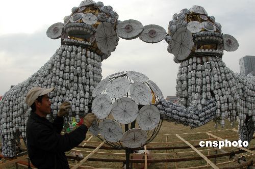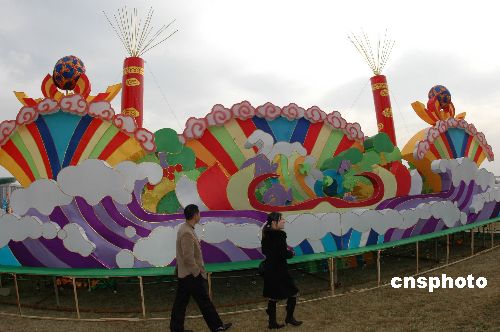 元宵节来临之际,青岛开发区张灯结彩喜迎新春。青岛开发区有举办元宵灯会的传统,每年元宵节都要举办大型灯会,让市民分享经济发展带来的成果。与以往不同的是,今年的元宵灯会结合中国南北彩灯的特色,既有粗犷、声、光、电展示的北方组灯,也有俊朗秀气的南方组灯。其中特别引人注目由6000多只碗碟、酒盅等瓷器组成的双狮舞绣球的彩灯。据介绍,奥运、十二生肖、猪年体裁的灯组成为青岛开发区元宵灯会的又一大特色。中新社发 俞方平 摄