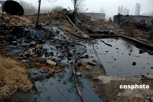 3月1日下午3时左右,山西洪洞县广胜寺镇柴村一土炼油厂发生爆炸,结果造成四人死亡,一人受伤。图为事故现场。中新社发 张长年 摄