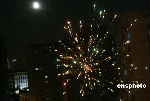 三月四日晚,北京处处烟花绽放,欢庆元宵佳节。中新社发 武仲林 摄