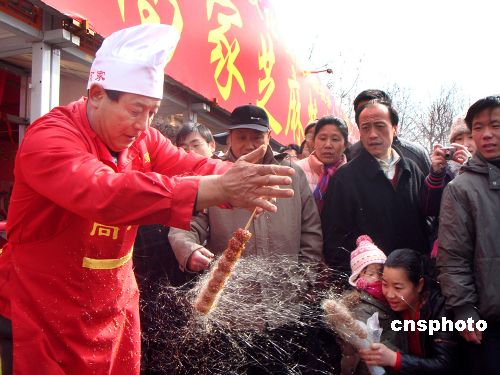 2007年青岛海云庵“糖球会”3月5日(农历正月十六)拉开帷幕。与往届相比,此次的“糖球会”更显民俗文化特色。历史上住在青岛海云庵附近的百姓,过了正月十五在下地劳动和出海捕鱼前都要到海云庵烧香磕头,祈求丰年、保佑平安,于是就把正月十六定为海云庵庙会。由于庙会上卖糖球(冰糖葫芦)的商贩较多,而且花色品种众多,深受民众喜爱,民众逐渐将庙会称为“糖球会”。中新社发 肖相波 摄