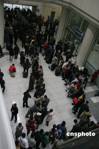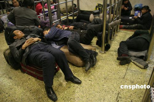 2007年3月5日,由于京哈铁路沿途沈阳、长春等地4日遭遇大雪,由温州、武汉、北京等方向来哈尔滨的26趟列车全部晚点。当天哈尔滨寒风刺骨,最低温度达到零下17摄氏度,突如其来的变故让没有准备的旅客措手不及,近20000旅客滞留候车厅。19时30分,在哈尔滨车站内外挤满了拿着行李等待上车的旅客。车站大屏幕还在显示当日晚点10多次列车。车站工作人员、铁路民警、武警都到一线维持秩序,做好旅客的解释说服工作,保证旅客出行安全。中新社发 王忠言 摄