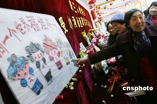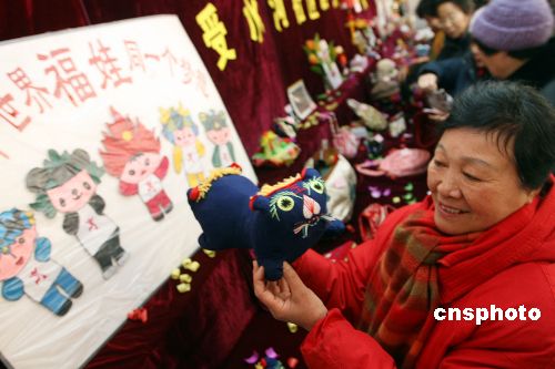 3月6日,北京市西城区金融街街道受水河社区的一位居民正在介绍自己亲手制作的传统手工艺品。当天,金融街街道组织地区内的妇女举办了各种各样丰富多彩的活动来迎接国际妇女节的到来。中新社发 闻昭 摄