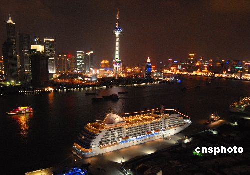 | 3月6日晚,巴哈马籍豪华邮轮“环球航海家”号停泊在黄浦江畔的上海港国际客运码头,这是本月上海国际客运码头迎来的第一艘豪华邮轮。随着上海大力发展邮轮经济及世博会的日益临近,今年已排定访沪计划的邮轮明显见多,已有30余艘世界各地的大型豪华邮轮“敲定”计划来沪。据了解,“环球航海家”号是世界知名豪华邮轮,堪称超六星级,邮轮上餐厅、酒吧、游泳池、健身房等娱乐设施一应俱全。中新社发 海牛 摄