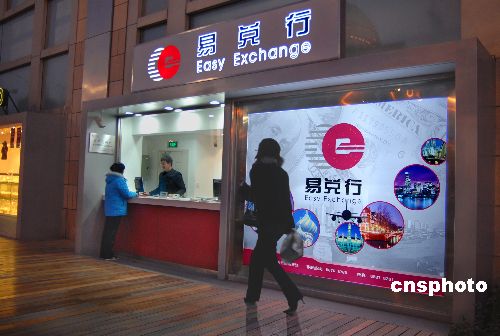 2007年3月6日,为推动浦东综合配套改革试点,国内首个小额外币兑换专业机构近日在陆家嘴悄然亮相,目前可兑换美元、英镑、日元等九种主要外币,给海内外游客和市民带来便利。据悉,近期沪上还将开出多个个人小额外币兑换专业网点。中新社发 海牛 摄