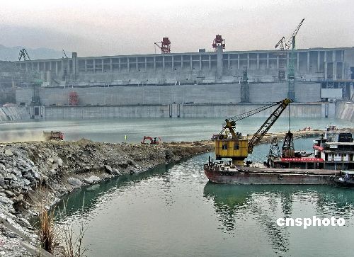 3月7日,三峡大坝右岸下游围堰,工程车在挖运土石料。据了解,三期下游土石围堰的拆除主要包括三期下游土石围堰填筑料及防渗墙的拆除等项目,其中水上拆除117.1万立方米,水下拆除84.6万立方米,防渗墙拆除0.87万平方米。中新社发 韩玉洪 摄