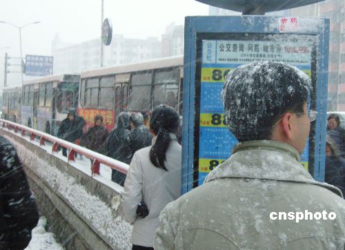 3月9日,受蒙古气旋影响,哈尔滨又降下一场春雪,降雪对当地的旱情起到了缓解作用,同时也给市民的出行带来不便。据黑龙江气象台消息,未来两天黑龙江省大部分地区自西向东将出现大雪或中雪天气,个别市县将有暴雪。中新社发 陈维奇 摄
