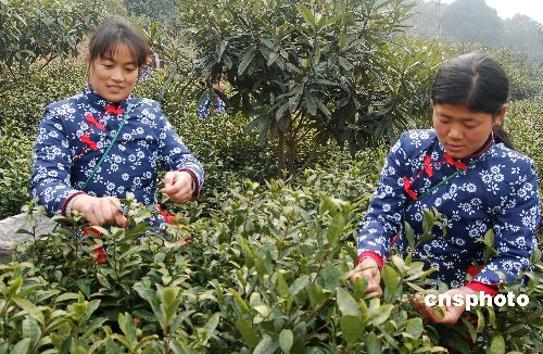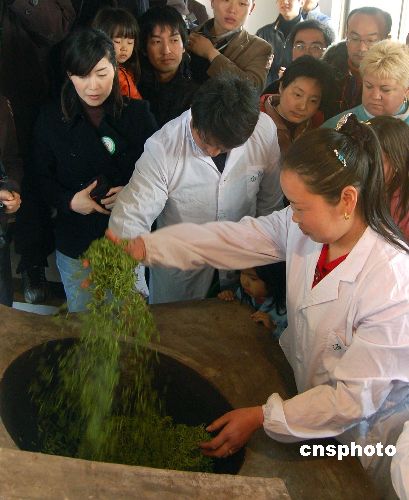 3月10日,“2007中国苏州吴中洞庭(山)碧螺春茶文化节”在东山镇沙滩山开幕,标志着地产正宗优质的洞庭(山)碧螺春茶批量上市,其中极品碧螺春茶每公斤买到一万二千元。中新社发 邱勇 摄
