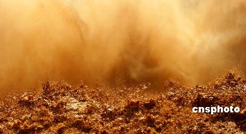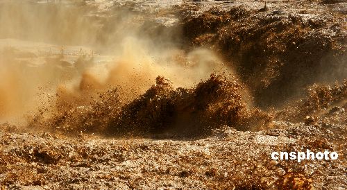 3月11日,山西省吉县黄河壶口瀑布迎来了今年的桃花汛,水势比平时大了许多,出现了许多的侧瀑布。据当地人讲,今年的桃花汛比往年提前了十多天,也比往年要大的多,附近的居民都来观赏桃花汛。中新社发 张旦 摄