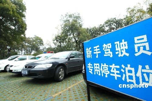 3月19日,首批长6米、宽4米的新手驾驶员专用停车泊位出现在杭州三台山庄,泊位的出现受到众多新车手的欢迎。据悉,泊位设在山庄最宽最平坦的路面,且比一般泊位宽,以方便新手驾驶进出。中新社发 引炜 摄