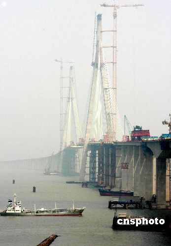 图:苏通大桥“合龙”施工进入倒计时