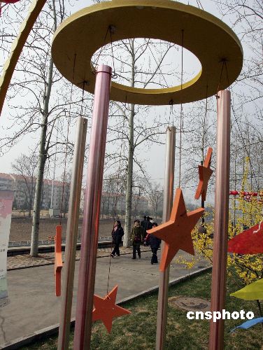 3月29日,以“敲响春天”为主题的北京玉渊潭公园第19届樱花文化展暨风铃艺术展开幕,是次活动充分展示了浪漫绚丽的樱花与清脆飘逸的风铃完美的结合,园内为游客设置了植物景观、科普画廊、风铃展示、以及赏樱知识问答等活动。中新社发 钱兴强 摄
