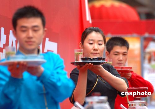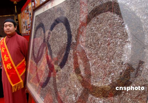 从三月三十日起北京老舍茶馆启动奥运倒计时活动,准备以优良的老北京文化面貌迎接奥运宾朋。中新社发 廖攀 摄