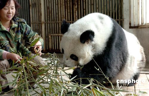 在山东济南动物园熊猫馆的大熊猫桃桃是山东省内动物园中唯一的大熊猫,现已35岁,雌性,是我国大熊猫中的年龄最大的“寿星”。桃桃是济南动物园向成都百水江自然保护区租借的,1994年来到济南,得到了动物园的精心照料,现在桃桃身体健康,只是眼睛患有严重的白内障,动物园正在为桃桃寻找新的认养人。据了解,野生大熊猫的寿命一般在25岁左右,人工繁殖的大熊猫寿命一般在30岁左右。中新社发 张侃 摄