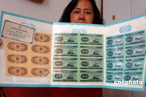 | 图为新疆吐鲁番市一位市民展示高价收藏的纸分币。据中国人民银行消息,4月1日起,1953年版的5分纸币、2分纸币和1分纸币将停止在市场上流通。据悉,1948年12月1日中国人民银行成立至今,中国先后发行了5套人民币,由于第三、四、五套人民币均未发行纸分币,所以第二套人民币纸分币的退市,标志着纸分币彻底退出市民生活。第二套人民币纸分币的退市引发了收藏热,一套八连张的纸分币在收藏市场卖到了500元以上,一套连号的单张纸分币也在150元左右。中新社发 姜浩 摄