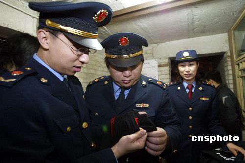 四月三日,北京西城工商分局在辖区内一地下仓库查获数千件假冒耐克、阿迪达斯国际著名品牌的服装。目前,此案正在进一步审理中。中新社发 任海霞 摄